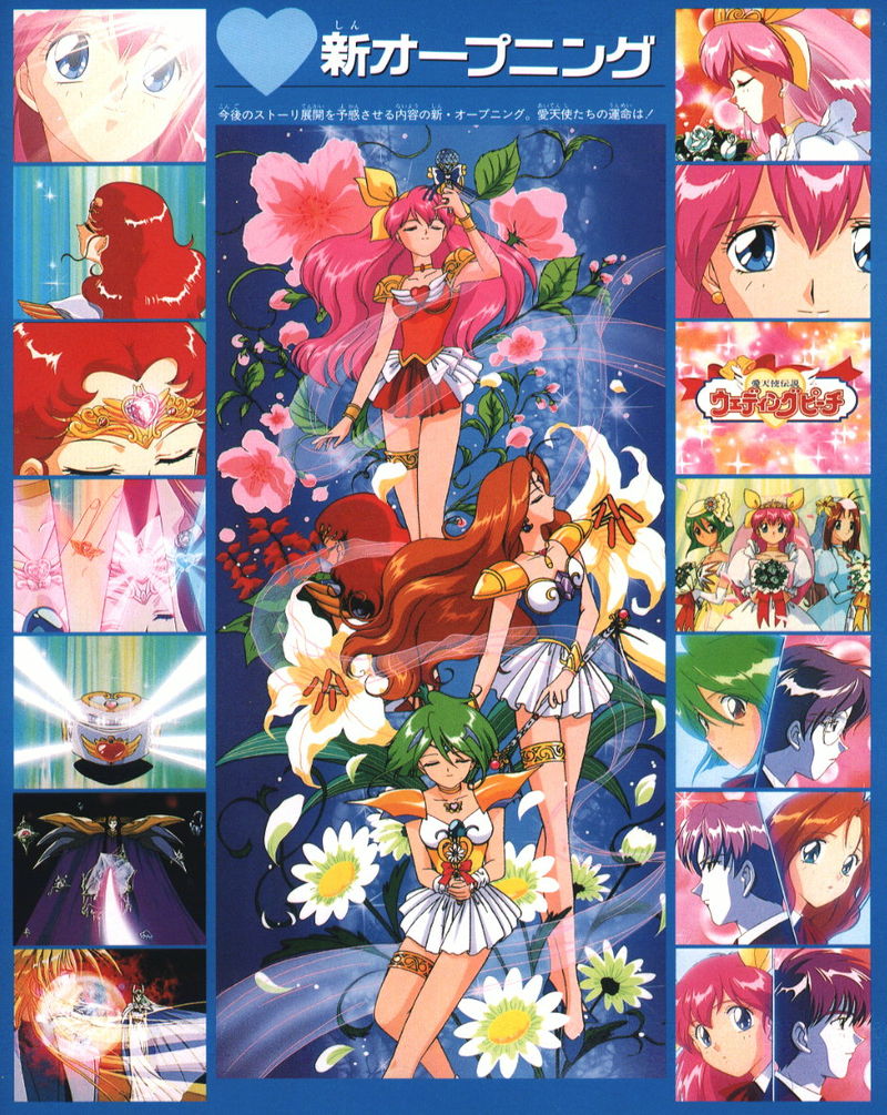 ฮานาซากิ โมโมโกะ เด็กสาวร่าเริงชั้นมัธยมปลายอยู่ชมรมหนังสือพิมพ์กับเพื่อนซี้อีกสองสาวคือ ทานิมะ ยูริ สาวหวานและ ทามาโนะ ฮินางิคุ สาวห้าว ทั้ง 3 คนล้วนตกหลุมรักรุ่นพี่ ยานางิบะ คาสึยะ รุ่นพี่ชมรมฟุตบอลคนดังของโรงเรียน แต่อุปสรรคของโมโมโกะคือนาย ฟูมะ โยสึเกะ ตำแหน่งนายประตู ที่โมโมโกะรู้สึกไม่ถูกโฉลกเอาซะเลย วันหนึ่งมีผู้ชายแปลกๆ จ้องจะแย่งชิงแหวนที่ระลึกจากแม่ซึ่งเธอสวมติดตัวไว้ ก่อนที่โมโมโกะจะเสียท่า ริโมเนะ ก็ปราฏกายขึ้นและมอบตลับแป้งเพื่อให้เธอสามารถแปลงกายเป็นเทพธิดาแห่งความรักด้วยพลังจาก อะโพรไดท์ เทพเจ้าแห่งความงามและความรัก โมโมโกะกลายเป็น 'เวดดิ้งพีช' , ยูริ กลายเป็น 'แองเจิ้ลลิลลี่' และ ฮินางิคุ กลายเป็น 'แองเจิ้ลเดซี่' พวกเธอได้รับภาระกิจให้ออกตามหา "ซัมซิ่งโฟร์" เครื่องราง 4 ชิ้น ที่จะทำให้เจ้าสาวที่กำลังจะแต่งงานได้รับพรให้มีความสุข ซึ่งเป็นสิ่งที่พวกปิศาจกำลังตามหาเพื่อกำจัดอำนาจแห่งความรัก ..ซึ่งแหวนจากแม่ที่โมโมโกะมีอยู่เป็น 1 ในซัมซิ่งโฟร์ที่ทั้งเทพและปิศาจต่างกำลังตามหานั่นเอง