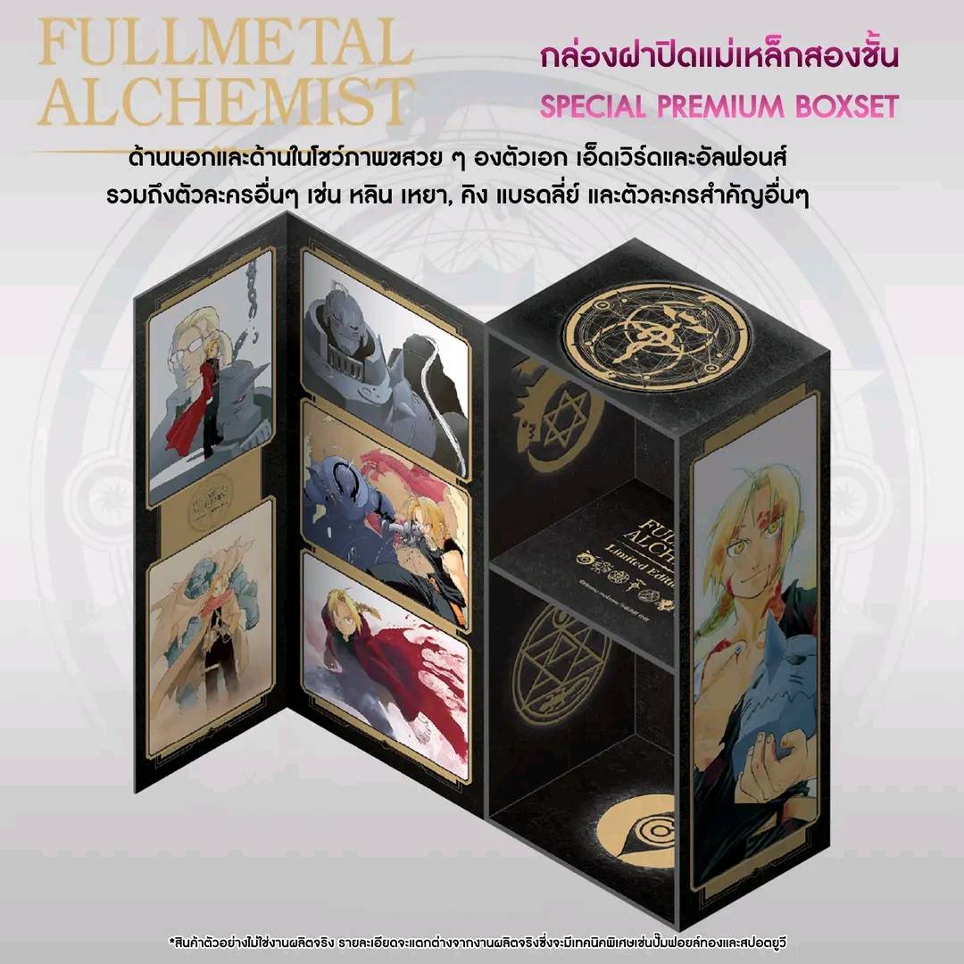 กล่องสุดพรีเมี่ยมนี้มาพร้อมเทคนิคปั๊มทองและสปอตยูวี โชว์ภาพของตัวเอก เอ็ดเวิร์ดและอัลฟอนส์ รวมถึงตัวละครอื่นๆ เช่น หลิน เหยา, คิง แบรดลี่ย์ และตัวละครสำคัญอื่นๆ พร้อมสัญลักษณ์วงแหวนเวทที่โดดเด่น